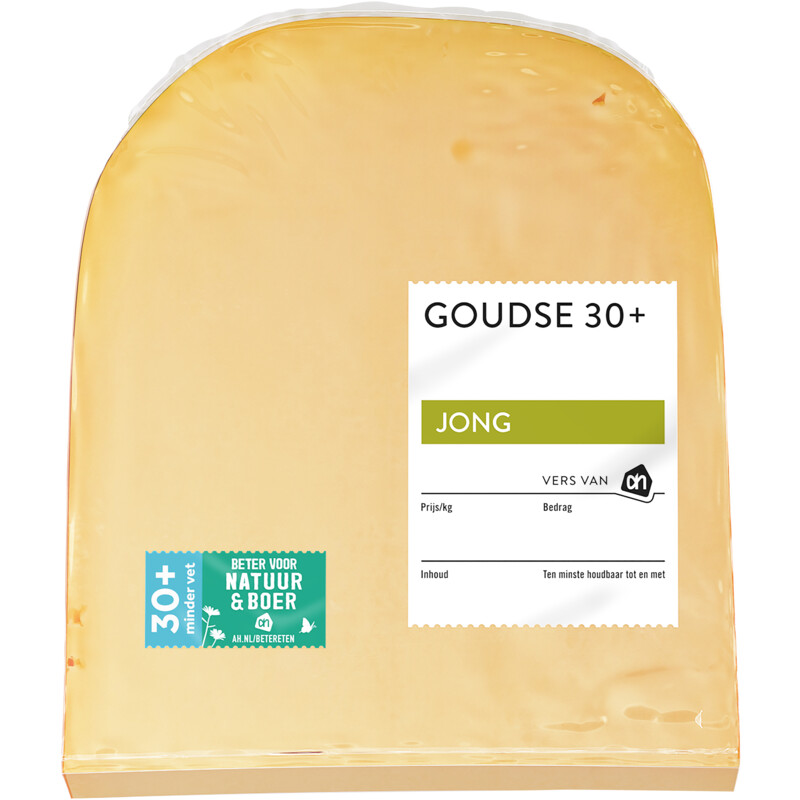 Deze Goudse jong 30+ is onze trots, gemaakt van weidemelk met alleen natuurlijke ingrediënten. De kaas is minder vet dan 48+ kaas, maar de smaak is minstens zo lekker! Bewust genieten dus.