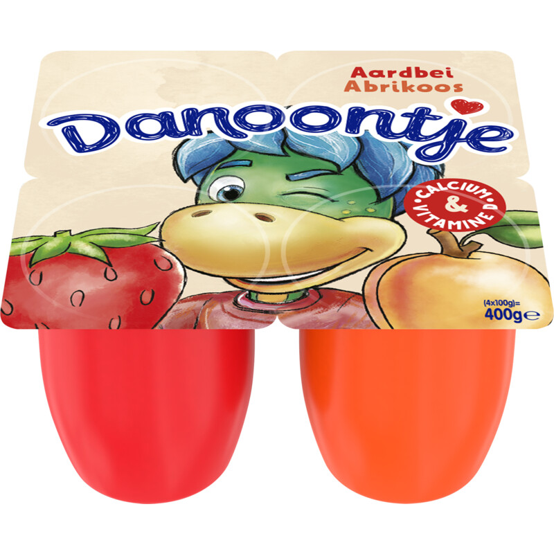 Danoontje fruitkwark aardbei abrikoos van Danone bevat 4 heerlijke kindertoetjes in twee verschillende smaken. Valt gegarandeerd in de smaak en is ook geschikt als tussendoortje of traktatie!