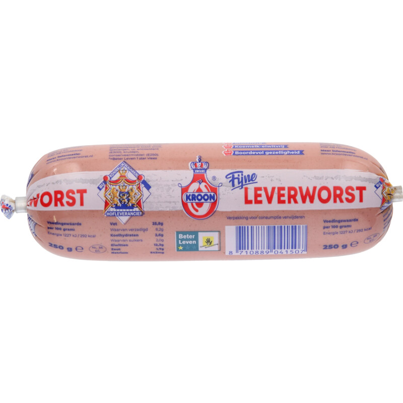 Kroon fijne leverworst bevat een hoog leverpercentage wat duidelijk in de smaak tot uitdrukking komt.